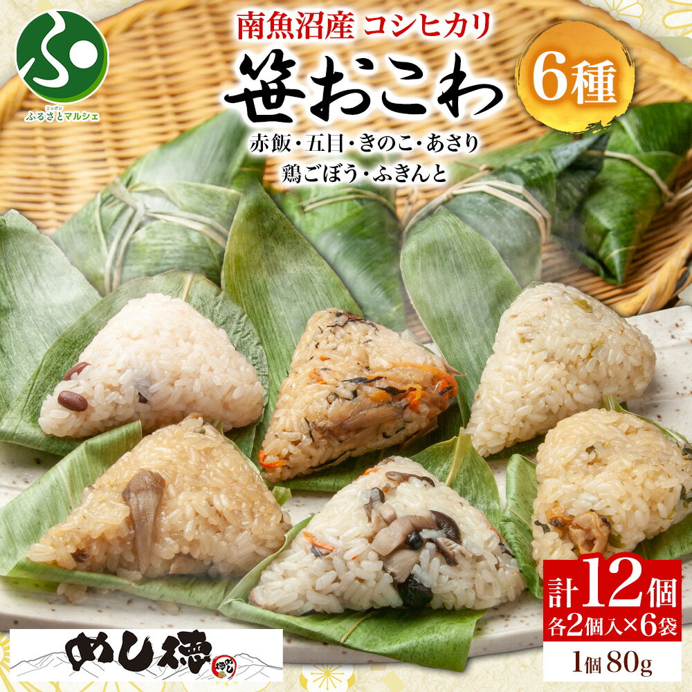 ▼新潟南魚沼産コシヒカリを使った笹おこわ6種!赤飯、五目、きのこ、鶏ごぼう、ふきのとう、あさり 12個セット♪