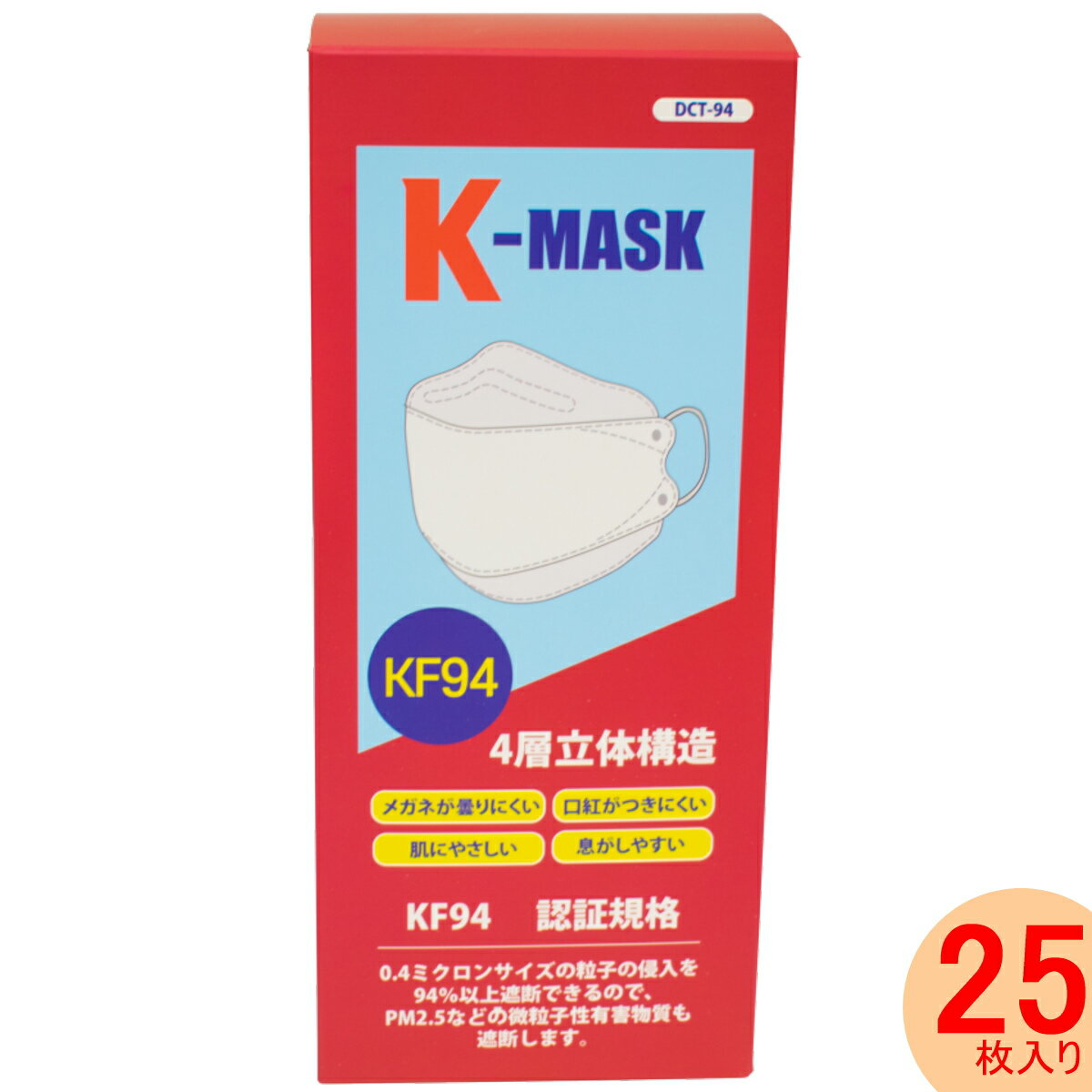 【あす楽】国際基準KF94認証 不織布マスク K-MASK 1箱(25枚入り) 4層立体構造 使い捨・・・