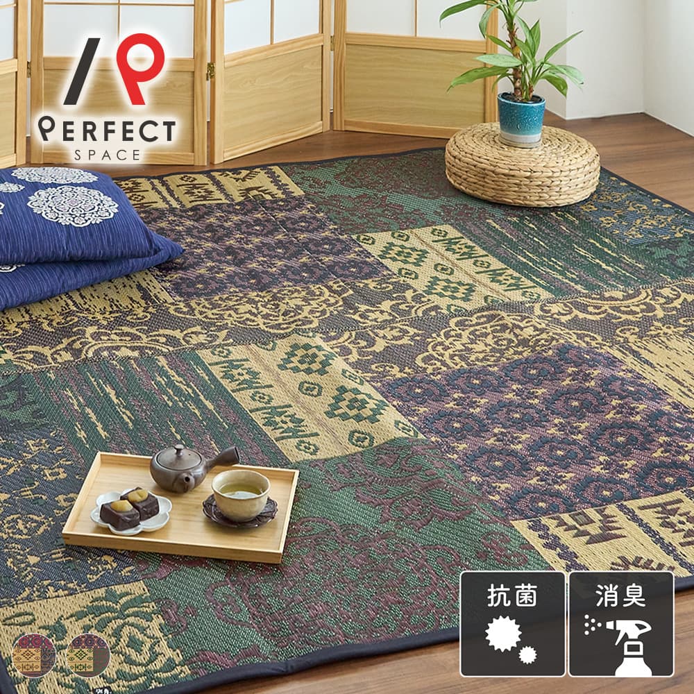 カイン い草 ラグ 江戸間2畳 174×174cm 正方形 ござ 花ござ 国産 日本製 上敷き 和室・・・