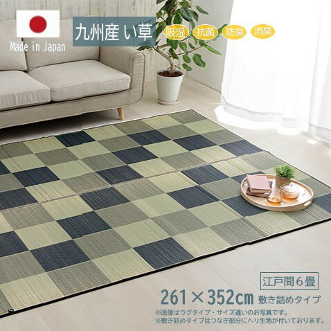 国産 6畳 六畳 江戸間 261 352 おしゃれ ラグマット マット カーペット 敷き詰め ござ ゴザ いぐさ イグサ イ草 市松 市松模様 チェック 幾何学模様 丈夫 耐久 調湿 畳 和 居間 上敷