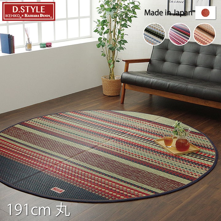 円形 デニム生地 カラフル い草カーペット 男前 不織布 カーペット 弾力 エスニック調 耐久性 かっこいい 男の子 約191cm丸 シンプル おしゃれ 国産 い草ラグ 丈夫 アクセント