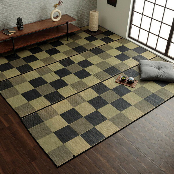 い草上敷き シンプル い草花ござ い草 イ草 ござ い草ラグ カーペット 畳みカバー いぐさ モダン 上敷き い草上敷カーペット い草花ござカーペット 江戸間3畳(約174×261cm) 市松柄
