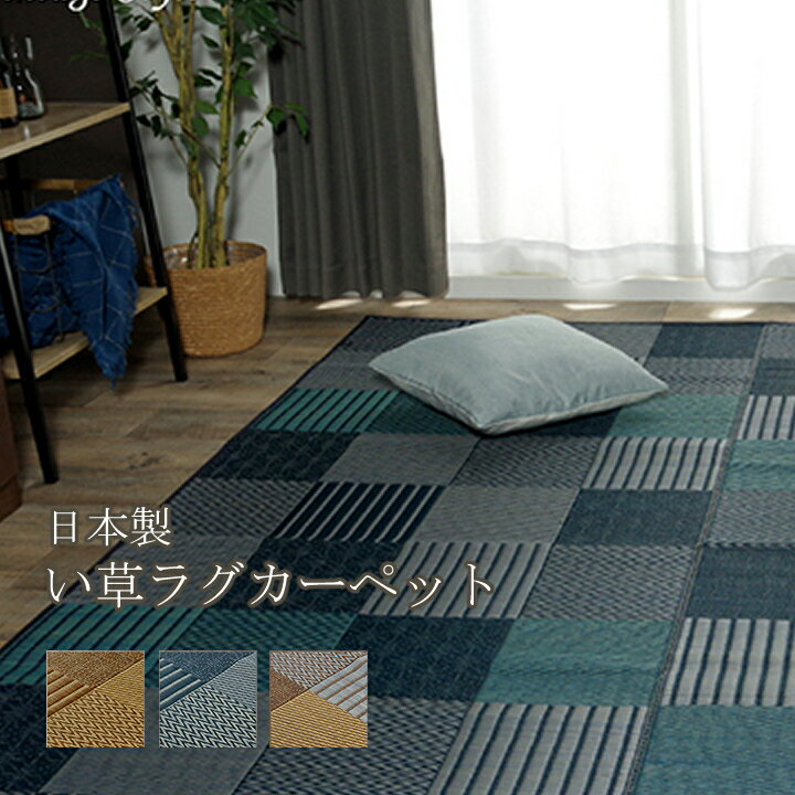 【エントリーで最大100%ポイントバック】 国産 い草ラグ カーペット おしゃれ ブロック調 江戸間・・・