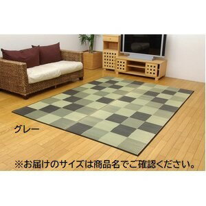 【ポイント20倍】日本製 い草 ラグマット/絨毯 【ブロック柄 グレー 約191×250cm】 調湿・・・