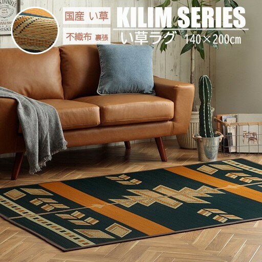【メーカー直送】イケヒコ い草 ラグ 長方形 日本製 不織布裏貼り 抗菌 防臭 消臭 エスニック D・・・