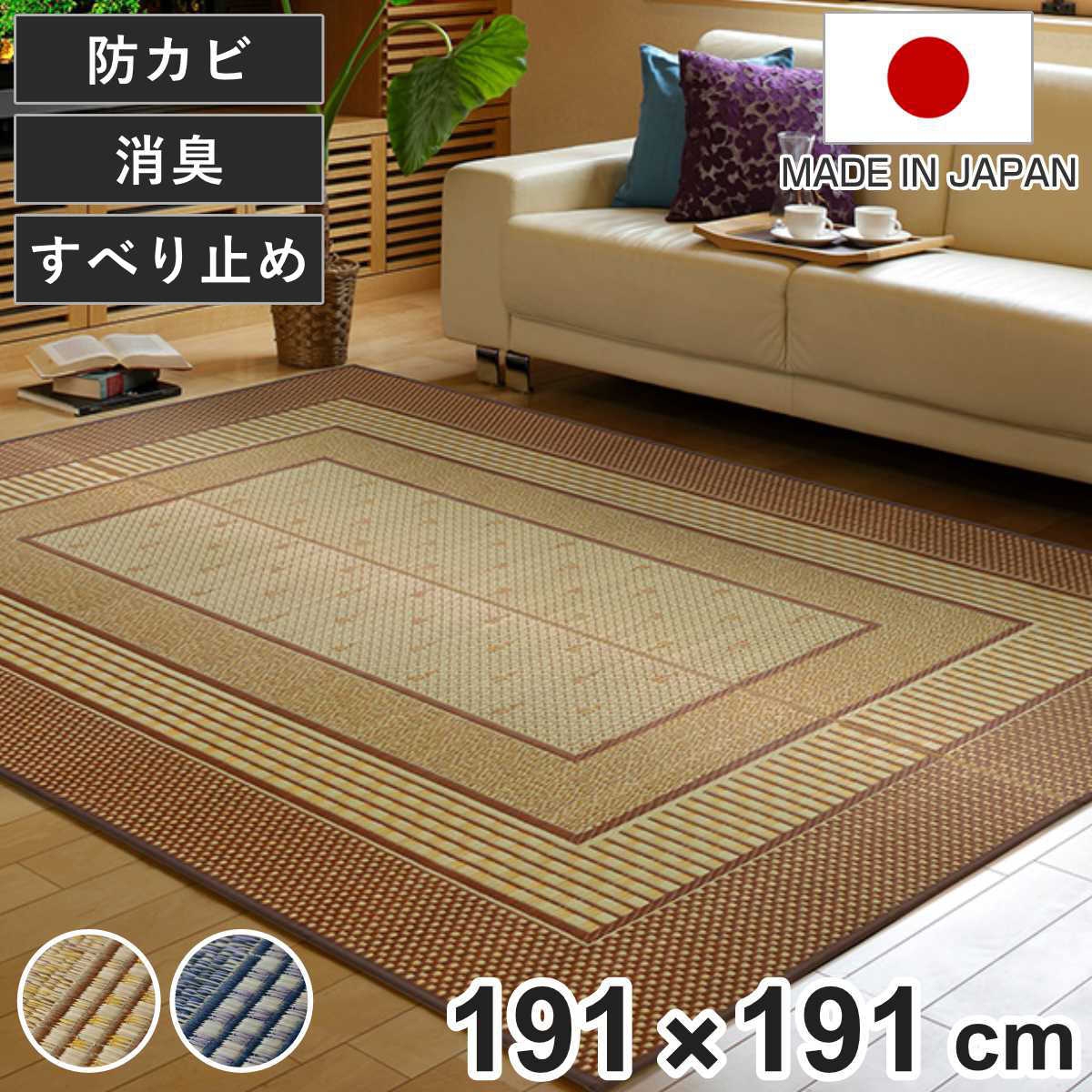 モダン い草 ラグマット/絨毯 【本間2畳 約191×191cm 正方形】 日本製 抗菌 防臭 調湿・・・