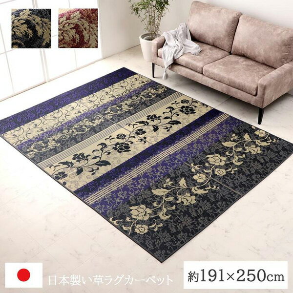 純国産 い草花ござカーペット 「 カイン 」江戸間6畳(約261×352cm)い草ラグ カーペット ・・・