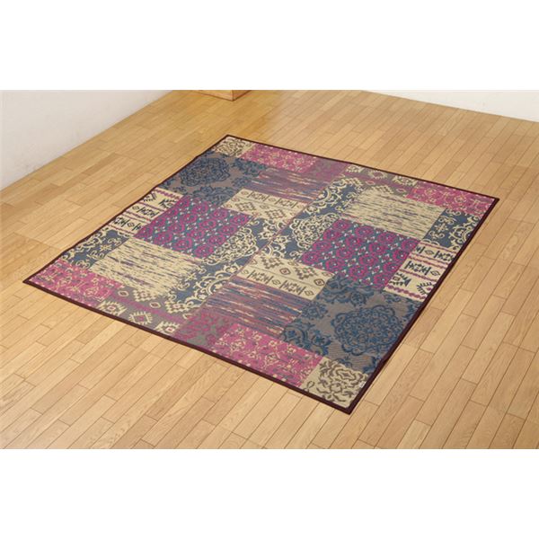 国産 い草ラグ カーペット おしゃれ おすすめ ブロック調 約191×191cm イ草 いぐさ い草・・・