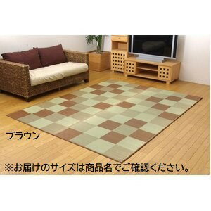 日本製 い草 ラグマット/絨毯 【ブロック柄 ブラウン 約191×191cm】 調湿 抗菌 防臭 耐・・・