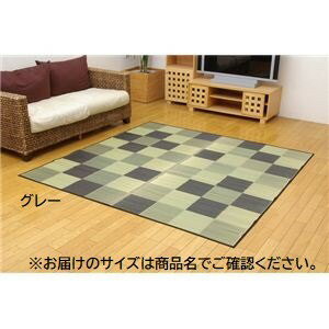 日本製 い草 ラグマット/絨毯 【ブロック柄 グレー 約191×250cm 裏:ウレタン】 調湿 抗・・・