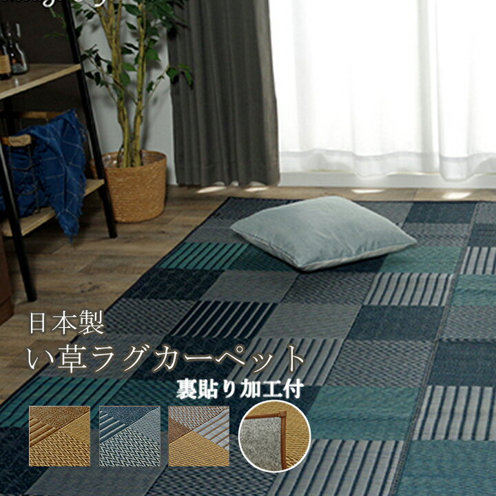 国産 い草ラグ カーペット おしゃれ おすすめ ブロック調 約191×250cm・・・