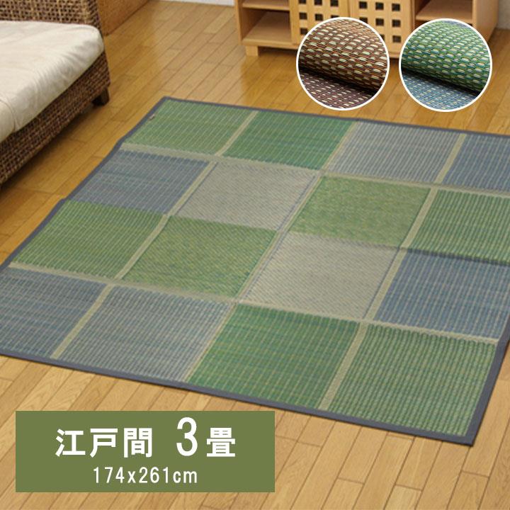 ブロック (I) 国産 い草ラグ カーペット おしゃれ おすすめ ブロック調 江戸間6畳(約261×・・・