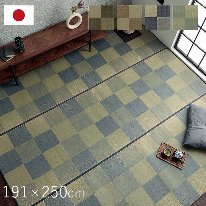 国産 い草ラグ カーペット ブロック調 おしゃれ おすすめ シンプル クッション性 約191×250・・・