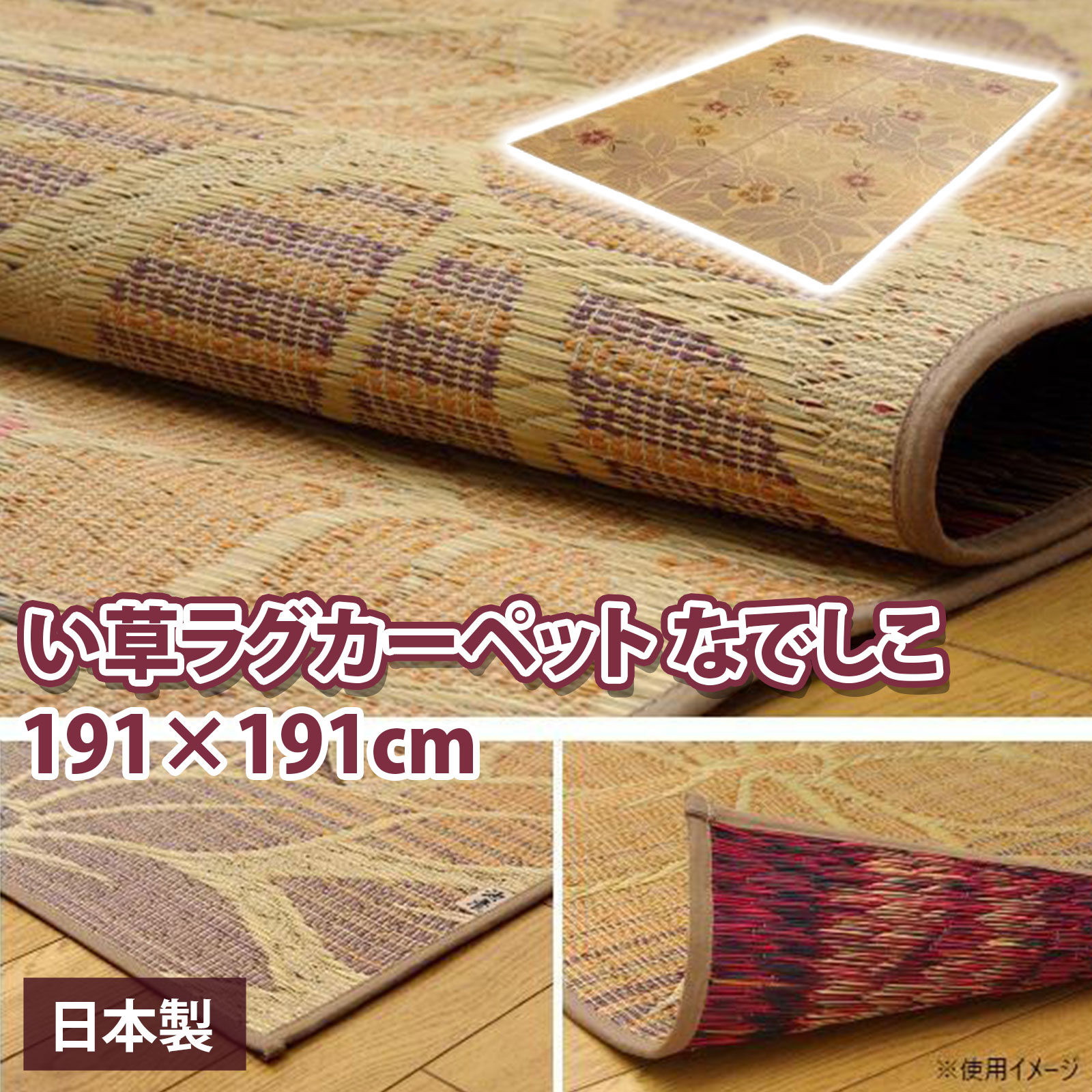 【送料無料】純国産 い草ラグカーペット 『なでしこ』 ベージュ 約191×191cm 1705920・・・