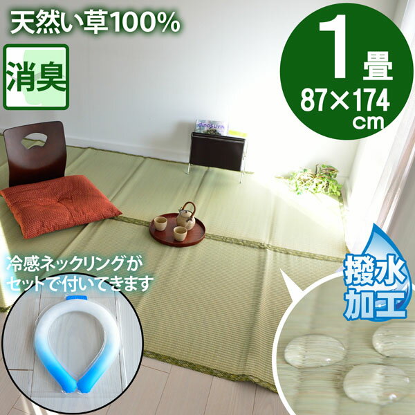 【冷感ネックリング付き】1畳 畳の上に敷くもの ゴザ い草 マット 上敷き 撥水 畳用 ラグ 江戸間・・・