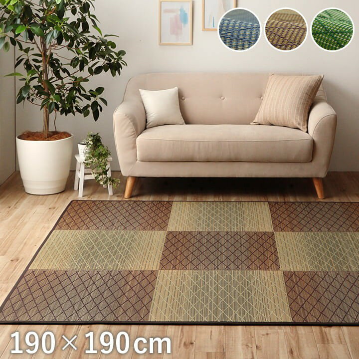 ラグ 正方形 い草 自然素材 シンプル ボーダー 裏面すべり止め付き 滑りにくい 抗菌防臭 約2畳 ・・・