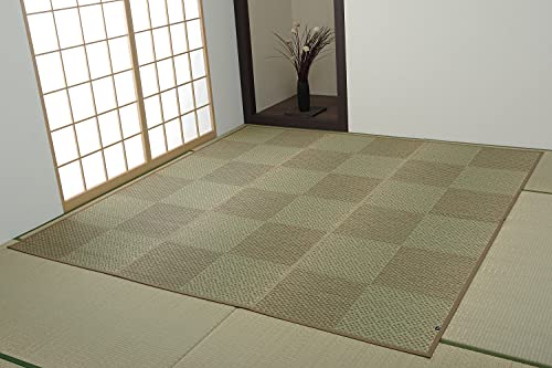 い草ラグ 花ござ カーペット 格子柄 ナチュラル シンプル 和室 洋室 裏不織布滑り止め 滑りにくい 抗菌防臭 消臭 お手入れ簡単 夏快適さらさら 江戸間2畳 (約174×174cm)