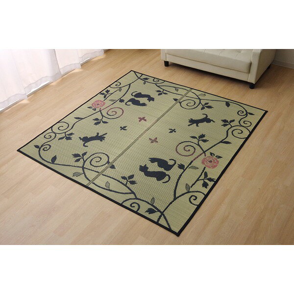 い草ラグ ラグ カーペット 2畳 正方形 猫 ねこ ネコ 『DXクロネコ』 約176×176cm (・・・