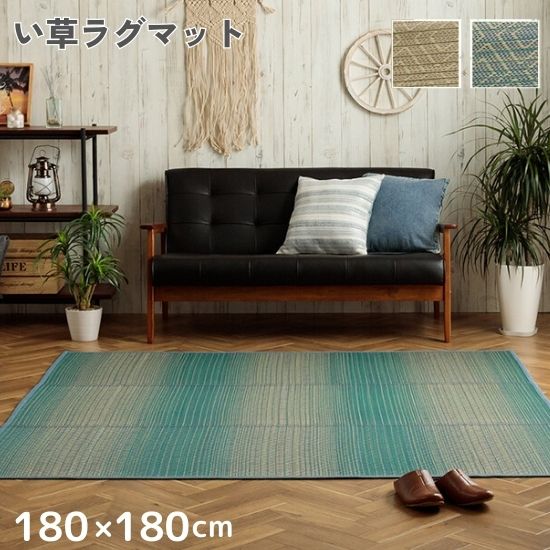 裏面滑り止め い草 ラグ「 DXグラデーション 」サイズ:191×191cmカラー:グリーン(#17・・・