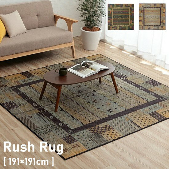 い草 ラグ ギャッベ柄 滑り止め加工付き 191×191cm ラグマット 2帖 2畳 191×191 ギャベ柄 お洒落 おしゃれ カーペット マット 抗菌 防臭 夏用 裏貼り 滑り止め い草ラグ