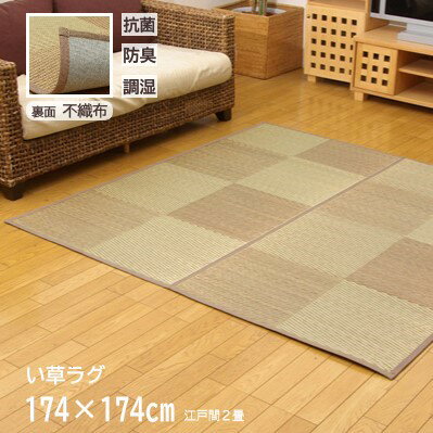 【送料無料】い草ラグ 174×174cm 江戸間2畳 花ござ カーペット 格子柄 ナチュラル シンプル 和室 洋室 裏不織布滑り止め 滑りにくい 抗菌防臭 消臭 お手入れ簡単 夏快適さらさら