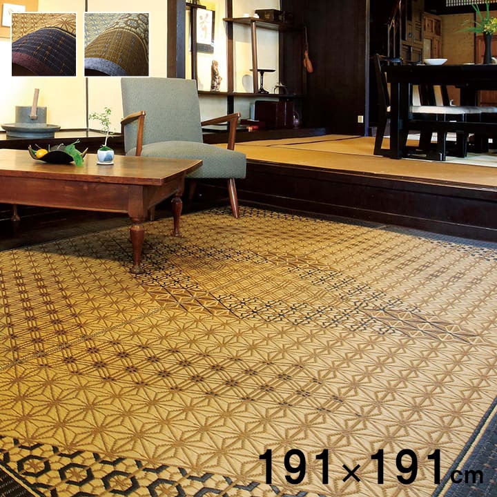 国産 い草 ラグ ブロックデザイン 191×191cm 2畳 2帖 い草 ラグ 裏貼り有り ラグマッ・・・