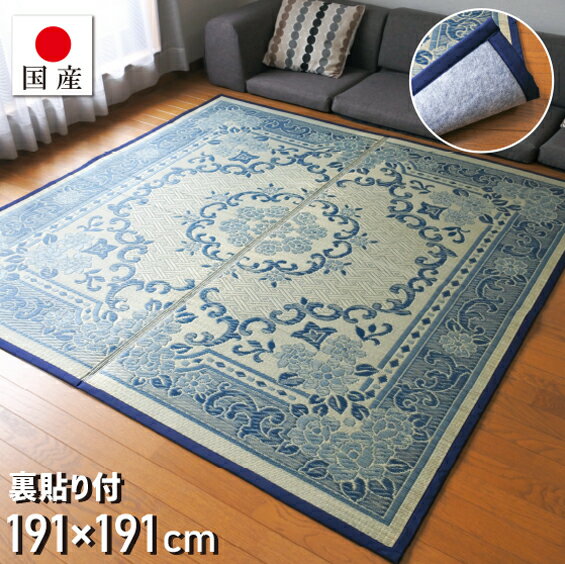 【国産】い草ラグ 加賀 裏貼り約191×191cm 約2畳【正方形】日本製 い草 天然素材 い草カー・・・