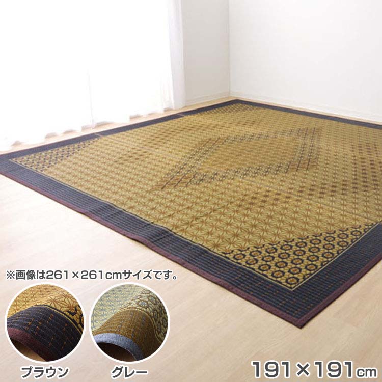い草 ラグ 江戸間2畳 約174×174cm 花ござ カーペット ラグ ギャッベ柄 抗菌 防臭 消臭・・・