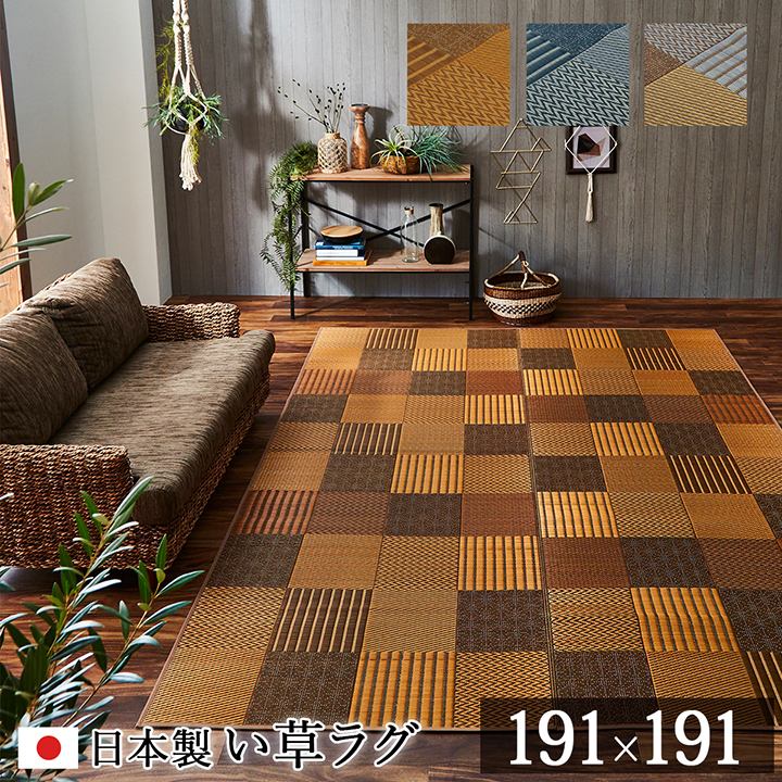 国産 い草 ラグ カーペット ブロック 江戸間2畳 (約174×174cm) おしゃれ ブロック調 ・・・