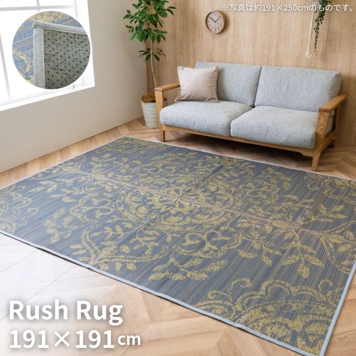 コンパクト収納 エレガントスタイル い草 ラグ 191×191cm いぐさ ラグマット 2畳 お洒落 おしゃれ カーペット マット 抗菌 防臭 夏用 モダン クラシック柄 滑り止め付き