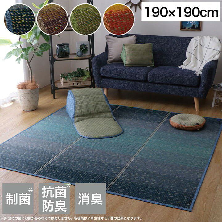 掛川織 い草 ラグマット 【ベージュ 本間2畳 約191×191cm】 抗菌 防臭 消臭 調湿機能付・・・