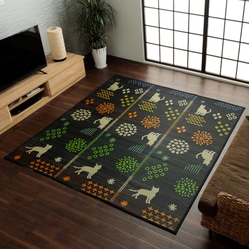 イケヒコ い草 ラグ カーペット 長方形 NSはなねこ ブラック 約180*240cm 湿度調整作用・・・
