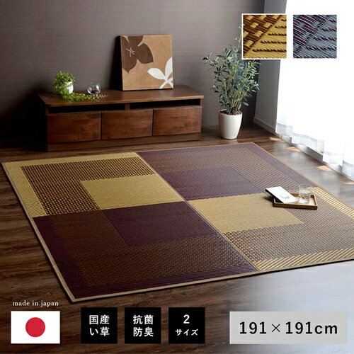 い草ラグ 花ござ 本間2畳 約191×191cm 正方形 カーペット ラグ 格子柄 市松柄 防臭 絨・・・