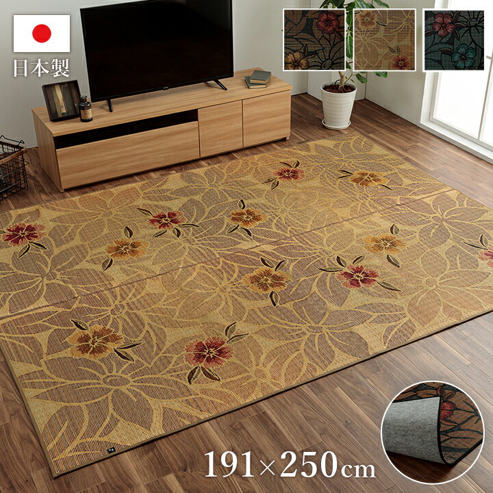 純国産 袋織い草ラグカーペット 花柄 和モダン 高級感 節電 夏用 滑り止め 約191×250cm ・・・
