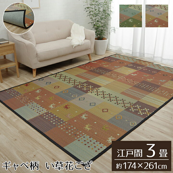 い草ラグ 裏ばり 花ござ カーペット ラグ 3畳 ギャッベ(ギャベ)柄 抗菌防臭 消臭 江戸間3畳 ・・・