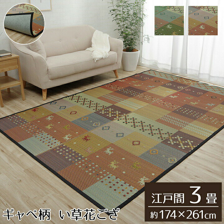 最大1000円OFFクーポン&100%ポイントバック ギャベ柄 い草 ラグ 花ござ セレナCP 江戸・・・