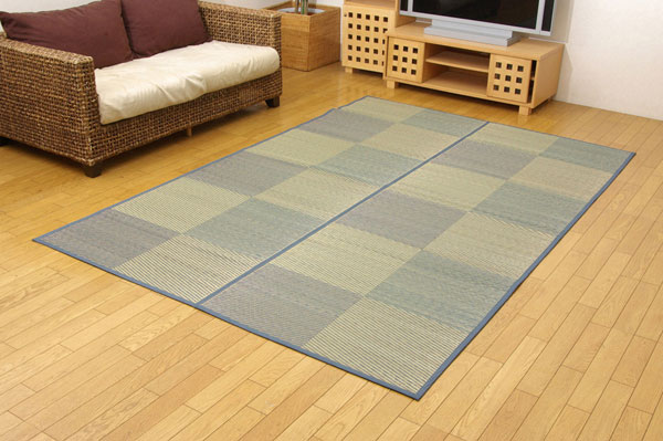 カーペット 花ござ 花ゴザ ござ ゴザ 敷き物 天然素材 自然素材 裏貼り 不織布 市松 チェック 青 茶色 灰色 畳 4畳半 四畳半 帖 4帖半 二 三 五 六 八 和 正方形 長方形 ナチュラル
