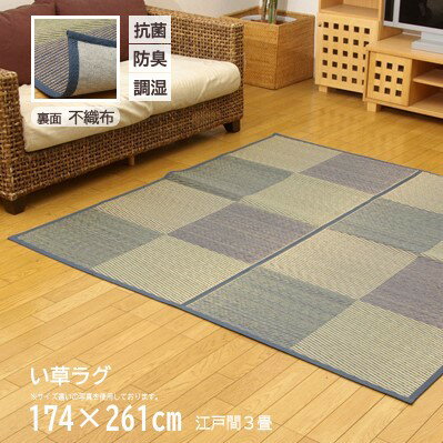 市松 市松模様 261 174 三畳 3帖 三帖 ござ ゴザ カーペット ラグマット マット 不織布 裏張り キズ防止 おしゃれ いぐさ イグサ イ草 青 夏 和 洋室 リビング 居間 子供部屋 サマー