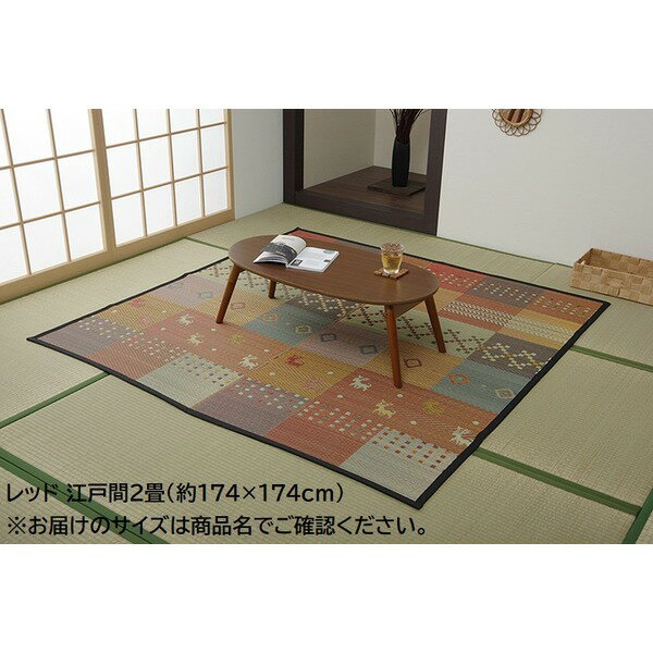 い草 ラグマット/絨毯 【江戸間3畳 約174×261cm レッド ギャッベ柄】 抗菌 防臭 消臭 ・・・