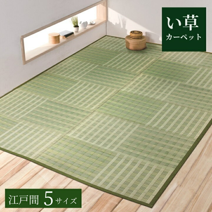 イケヒコ 純国産 い草花ござカーペット 『ブロック』 江戸間3畳(約174×261cm) グリーン ・・・