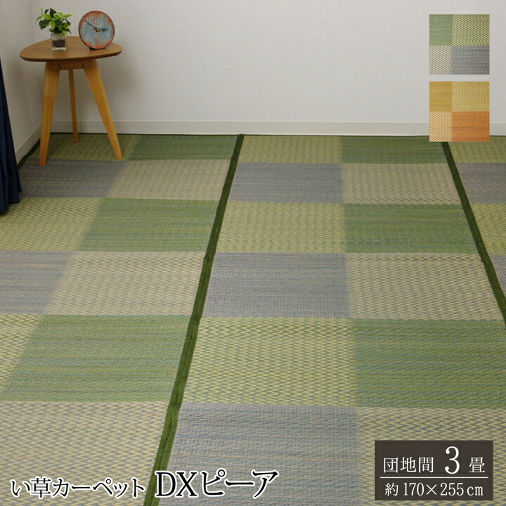 い草ラグ 花ござ カーペット ラグ 3畳 格子柄 市松柄 「 DXピーア 」(裏:不織布)団地間3畳・・・