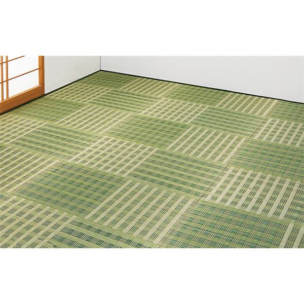 市松模様 い草花ござ/敷物 【グリーン 江戸間3畳用】 折りたたみ式 抗菌防臭効果 〔リビング ダイ・・・