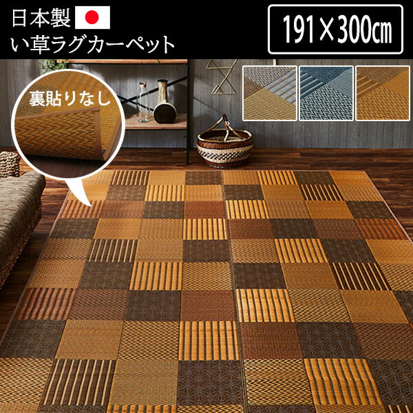 国産 い草ラグ 約191×250cm 約3畳 裏貼り 滑り止め加工 畳 上敷き 抗菌 防臭ござ い草カーペット ラグマット センターラグ アクセントラグ おしゃれ 井草 春夏秋冬用