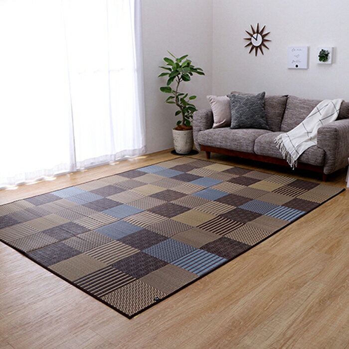 送料無料(沖縄・離島除く) 宅配便出荷 パッチワーク風デザインがおしゃれ!春夏のインテリアにぴったりのい草ラグカーペット