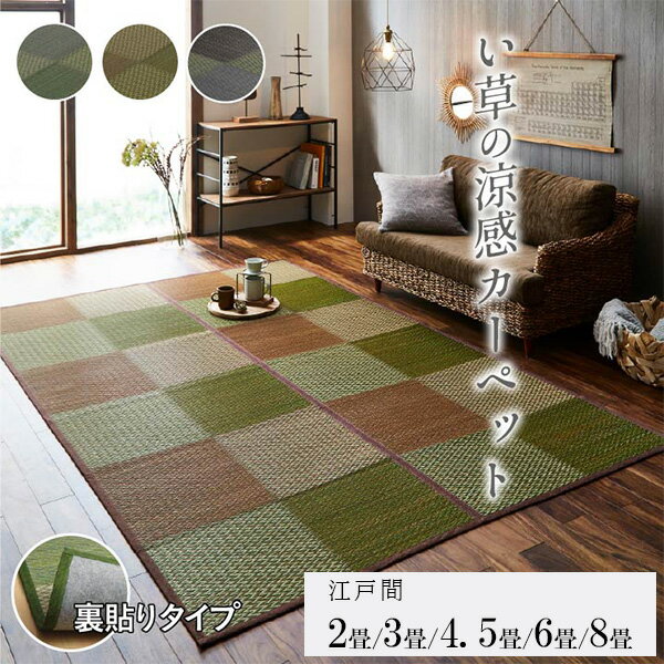 国産 い草ラグ カーペット おしゃれ おすすめ ブロック調 江戸間3畳(約174×261cm)イ草 ・・・