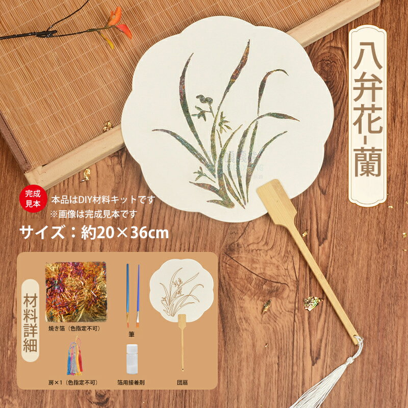 【金箔焼き団扇DIYキット】手作り和風団扇セット・伝統工芸体験セット(天然竹使用)・・・