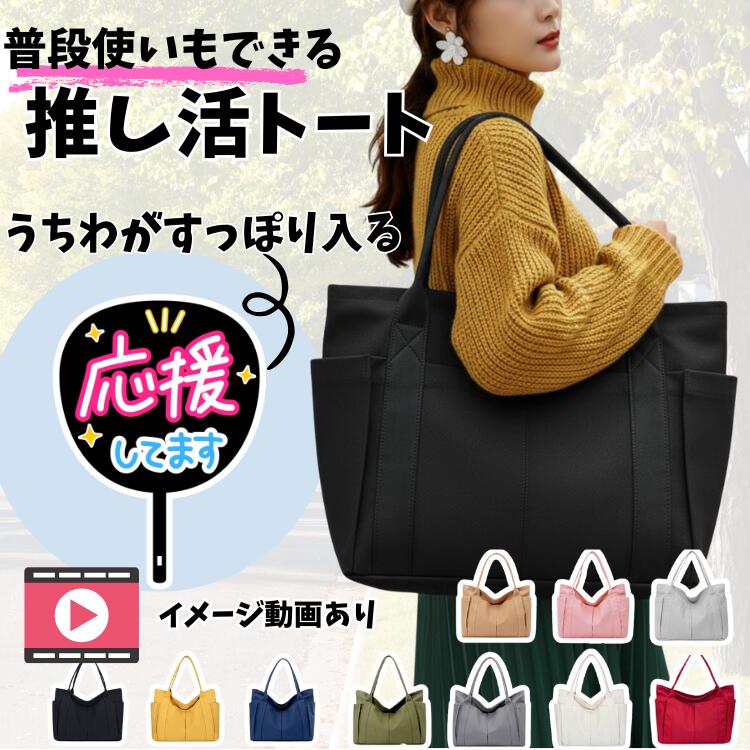 ポケット 肩掛け バッグ ライブ コンサート トラベル チャック 日帰り 入院 出産 マザーズバッグ ファスナー ポケット多め 大容量 特大 一泊 二泊 普段遣い 軽量 大人 うちわ トート A4