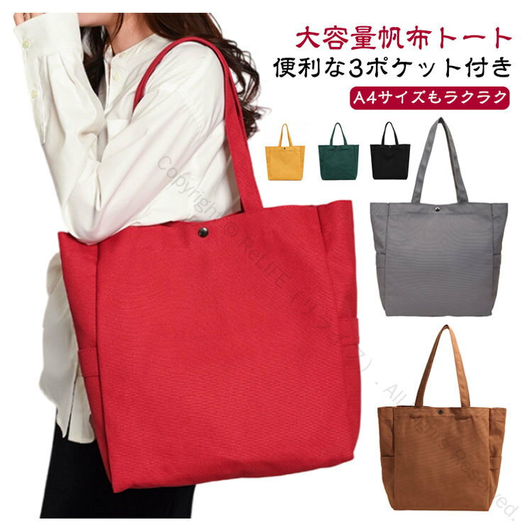 帆布 肩掛け キャンバス 布 トート 軽量 メンズ レディース ファスナー付き トートバッグ 軽い ・・・