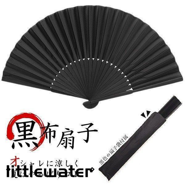 扇子 メンズ おしゃれ 布 ブラック モダン 無地 扇子袋付属・・・