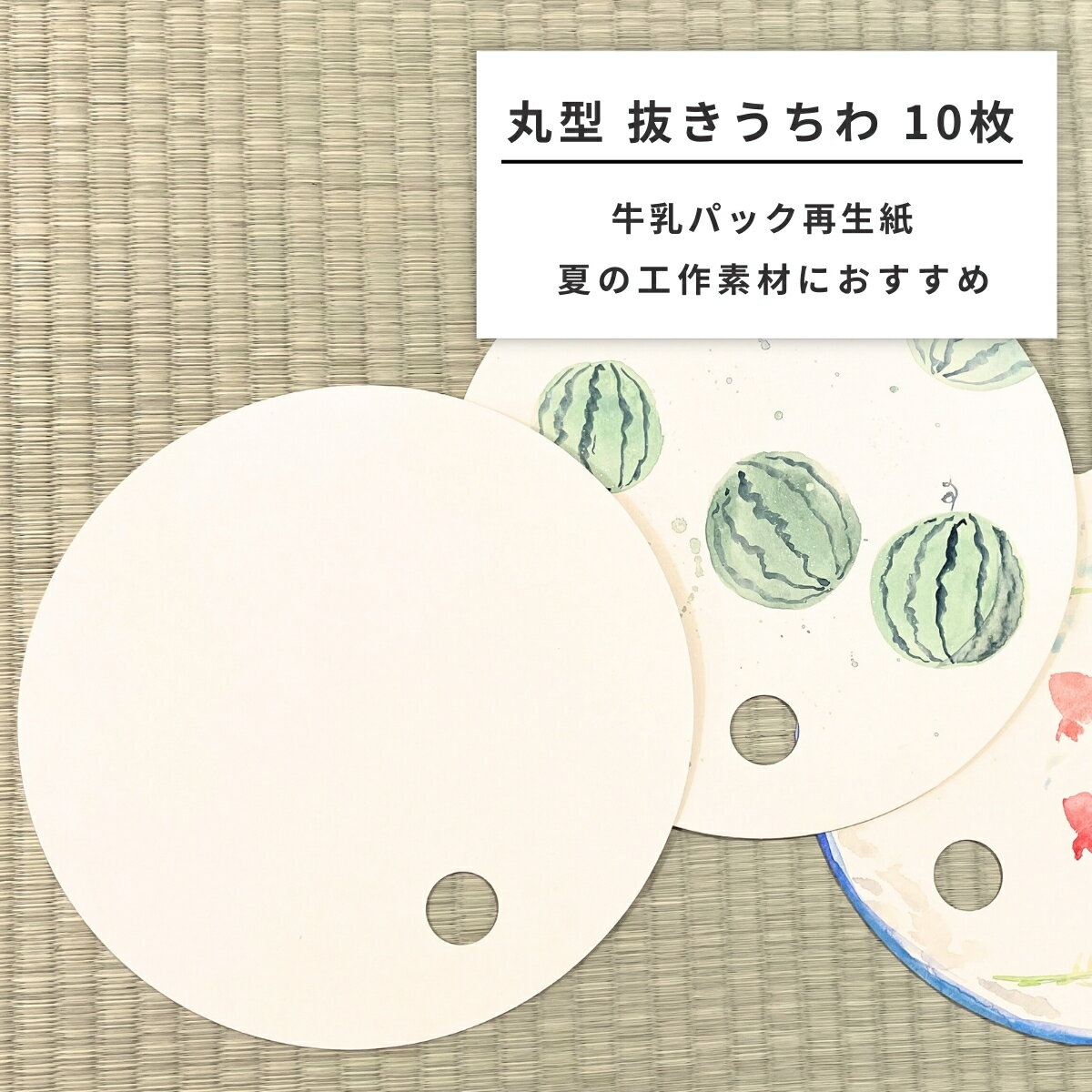 ミルパック 丸型 抜きうちわ 10枚組 牛乳パック再生紙 【 団扇 ウチワ ワークショップ 無地 】・・・